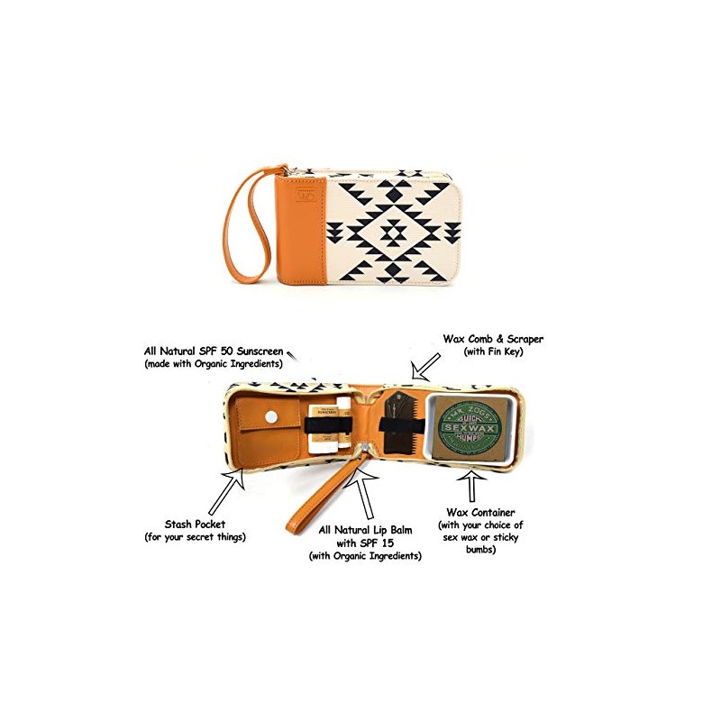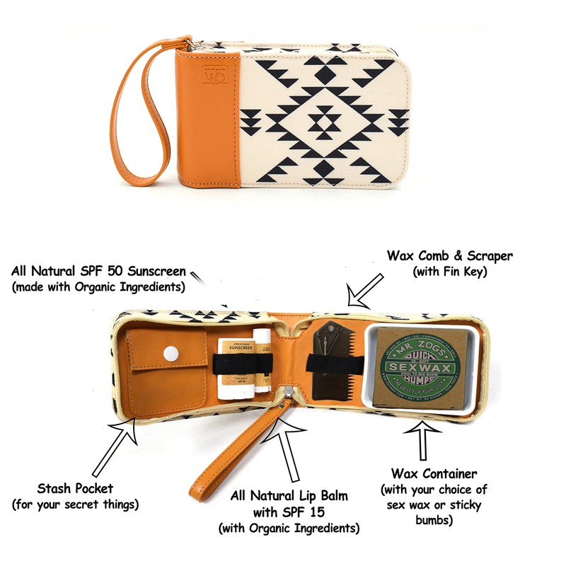 Surf Kit - A Great Surfer Gift & Surf Accessory that Holds your Surf Wax, Organic Sunscreen Face Stick, All Natural Lip Balm, Wax Scraper, and More! All in a Stylish Aztec Design Surf Wax Holder!