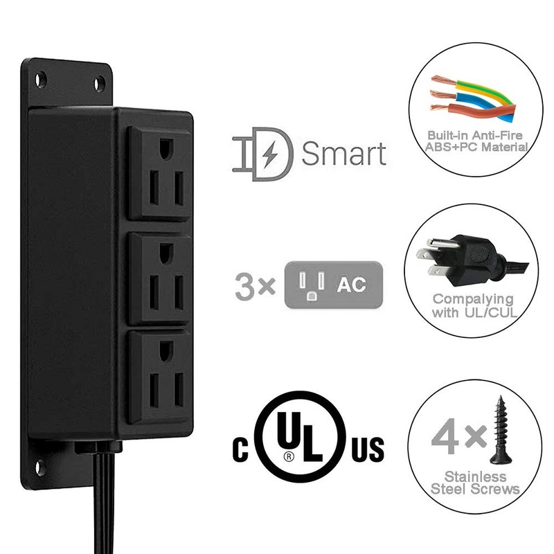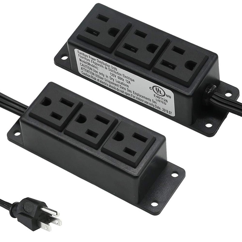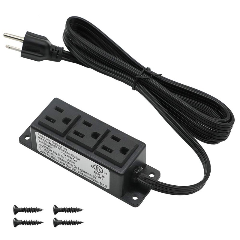 **Specification:** Item Size:5*1.6*1.4 inch AC Outlets: 3AC outlets Input: 125V/60Hz Rated Power: 1500W (125V 12A) **Please Note:** This item is built for furniture, provide people power source within reach. Widely used in hotel/office/home etc. It can be easily installed into desk/closet/cabinet/counter or anywhere you have an ideal on it. **Install detail:** 1\. Make sure there is enough space before you mount. 2\. Place this devices into the place. 3\. Screw it tight, the screws are included 4\. Connect power cord with power source. 5\. Finish! **Attention:** This item for indoor use only.