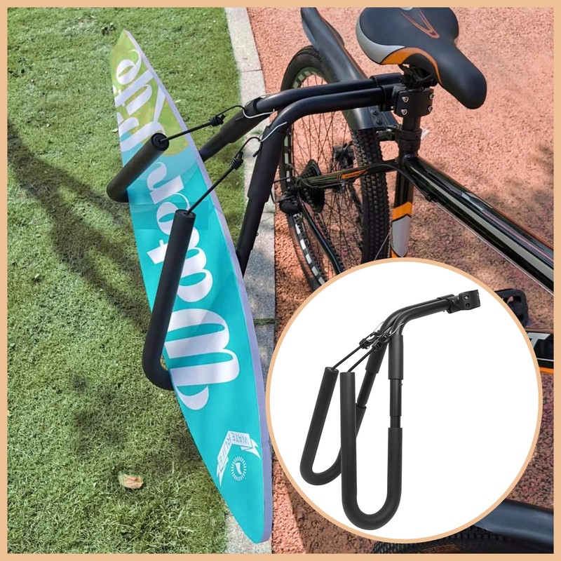 Surfboard Bike Rack, Adjustable Bike Surfboard Carrier Bracket, Fits Short Boards Up to 8 FT, Surfboard Holder for Boogie Boards, Snowboards