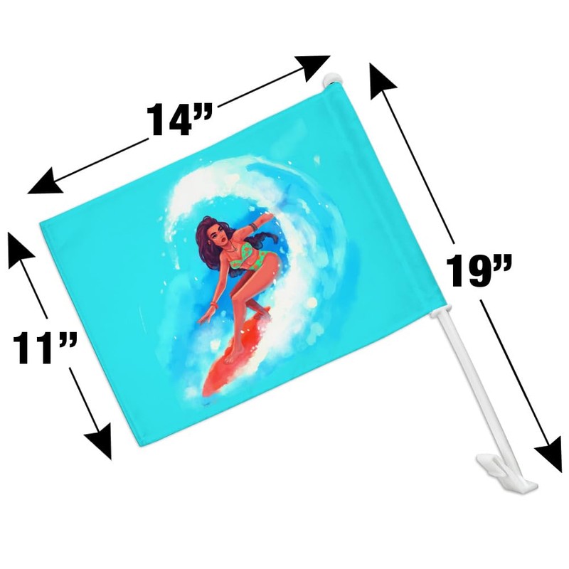 Surfer Girl Surfing On Wave With Surfboard Car Truck Flag with Window Clip On Pole Holder