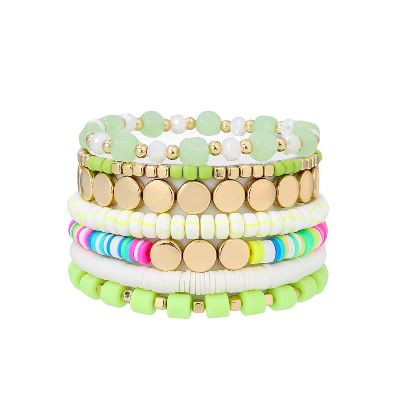 - Colorful Heishi Bracelets Set: For beach jewelry, aesthetic stuff Bracelets Jewelry we love a mix color of effortless layering bracelets. Bold and vibrant, the Bohemia bracelets are consist of flat clay beads and gold plated sequins on elastic bands.One package including 7 strands of heishi bead and gold bead bracelet, playful, colorful and stretch.