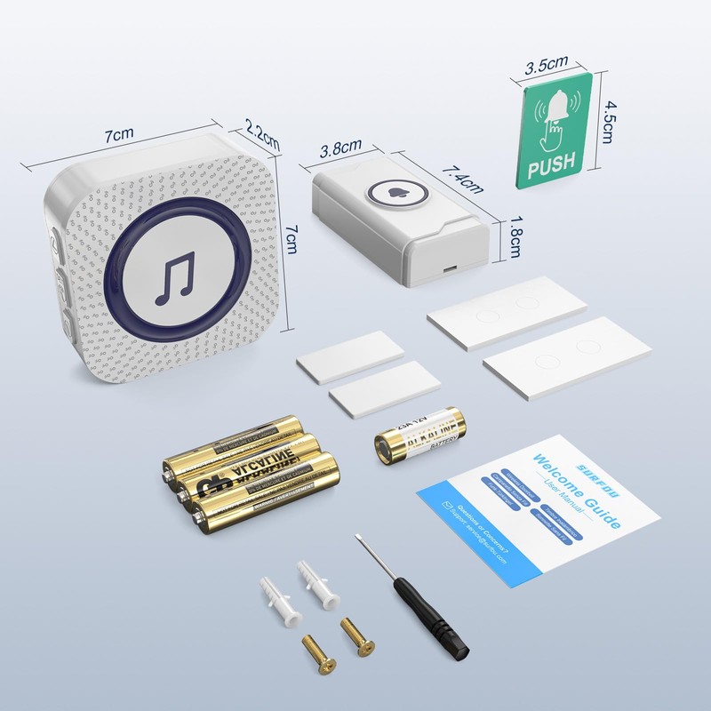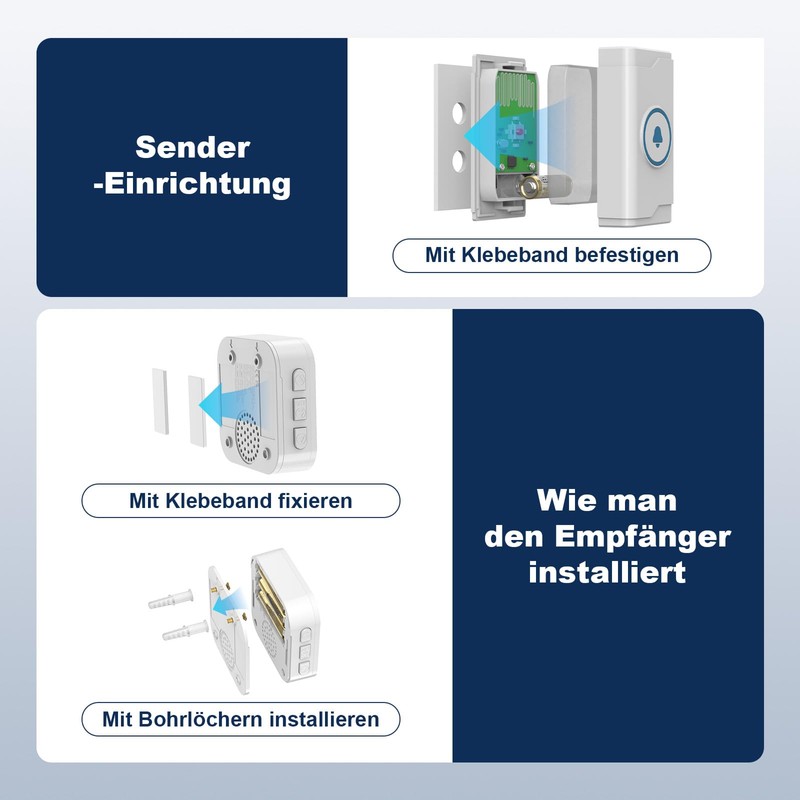 - 【Einrichtung in Sekunden】Befestigen Sie den drahtlosen Türklingel-Sender mühelos an Ihrer Wand – mit den mitgelieferten Schrauben oder dem Klebeband. Genießen Sie eine unkomplizierte Installation in weniger als einer Minute.