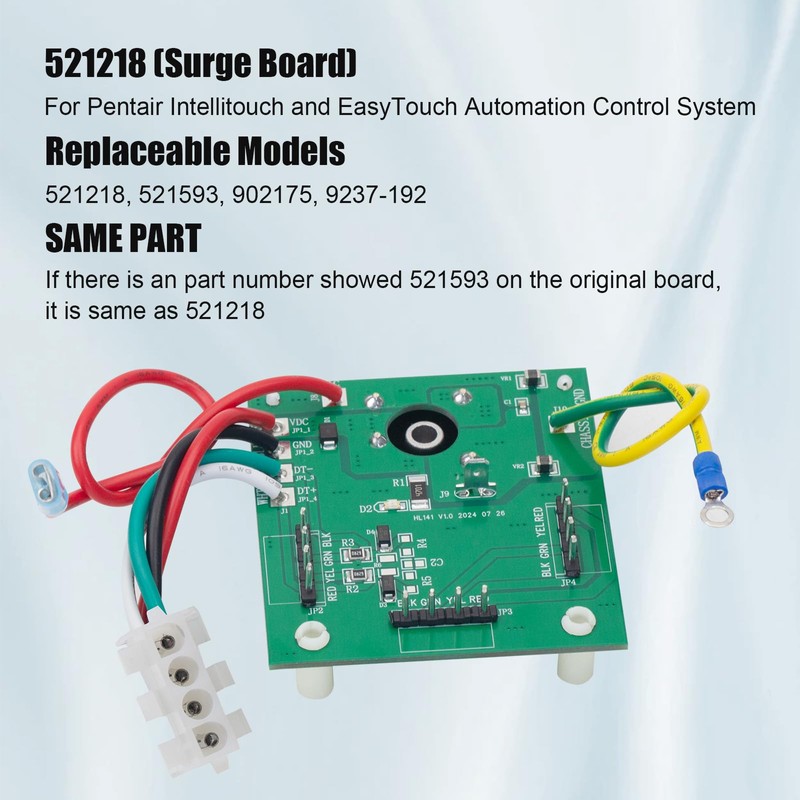Surge Board PCBA 521218 for Fits for Use with EasyTouch PL4/PSL4 Control Systems, IntelliTouch i5+3 3 Personality Kit Automation Control Systems Replace 521593 for Pentair