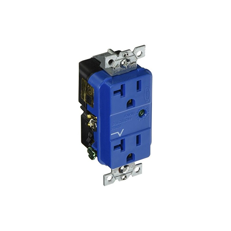 Surge Protective Devices, SPIKESHIELD TVSS Duplex Receptacle with Light, 20A 125V, 5-20R, Blue