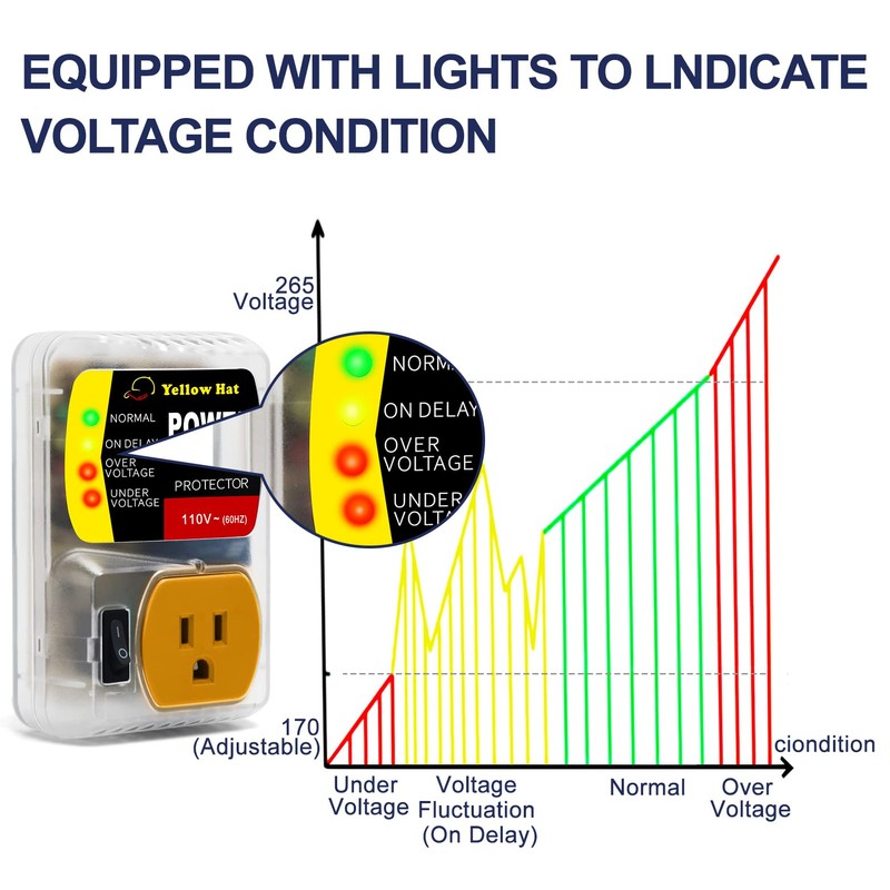 Surge Protector,Voltage Protector for Home Appliance, Voltage Brownout Outlet 110V 15A 2200 Watts Black