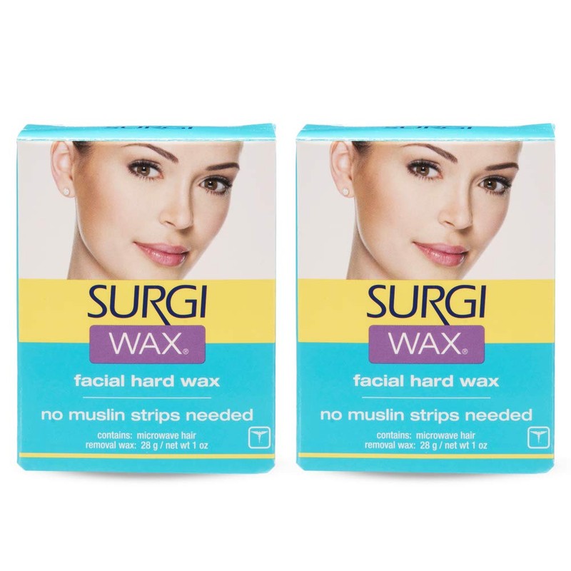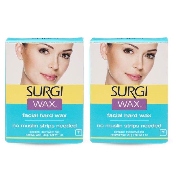 Surgiwax Microwaveable Facial Hair Removal Wax, Hard Wax Kit – Stripless Hair Removal for Face, & Upper Lip, At-Home Waxing Kit for Women, 1 oz, 2 Pack
