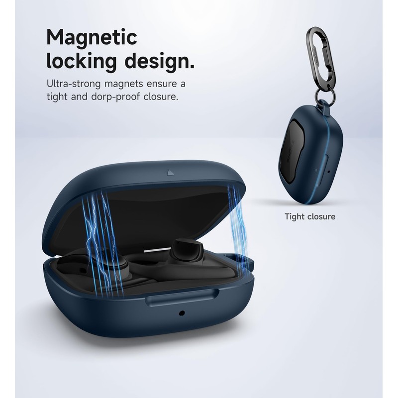 SURITCH for SHOKZ OpenFit Air Case Cover, Magnetic Locking Cases for SHOKZ OpenFit Air Open-Ear Headphones, Protective Bumper Cover with Carabiner & Keyring for OpenFit Air Earbuds (2024), Navy