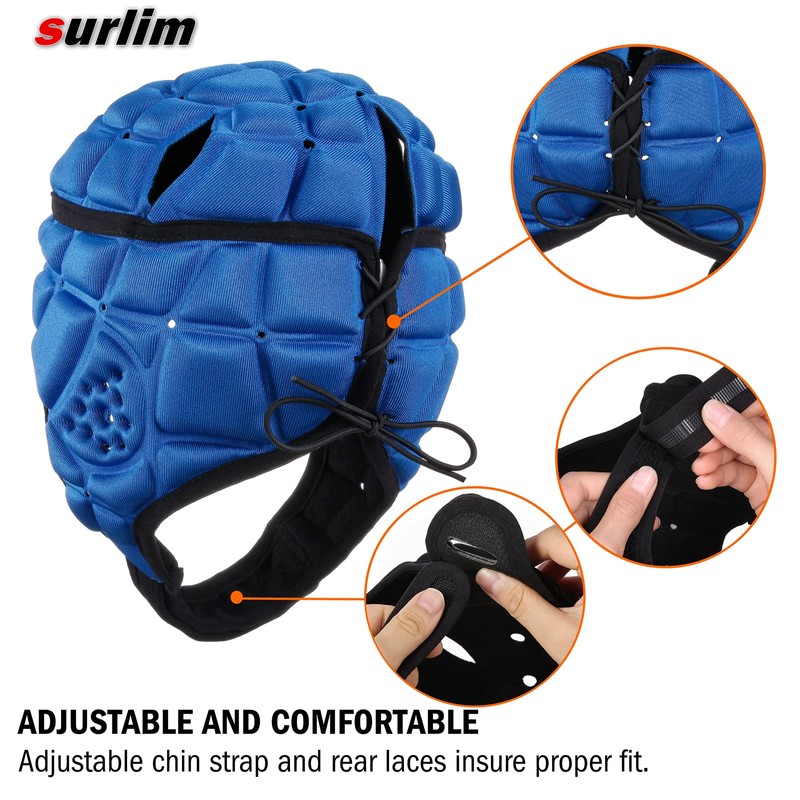 Surlim Rugby Helmet Headguard Headgear for Soccer Scrum Cap Soft Protective Helmet for Kids Youth Blue Small