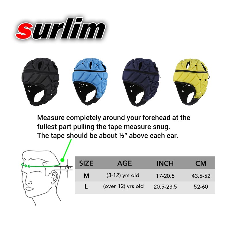 Youth and Adult Sizes,Measure completely around your forehead at the fullest part pulling the tape measure snug. The tape should be about ½” above each ear. :