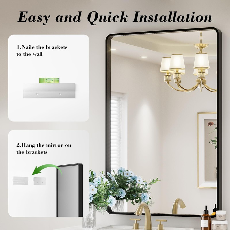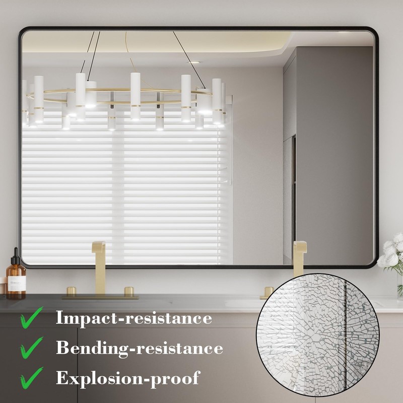 SURLUNKEYS Bathroom Mirror Black Frame - 30x22 Inch Rectangle Wall Mirror Shatterproof with Safe Rounded Corner