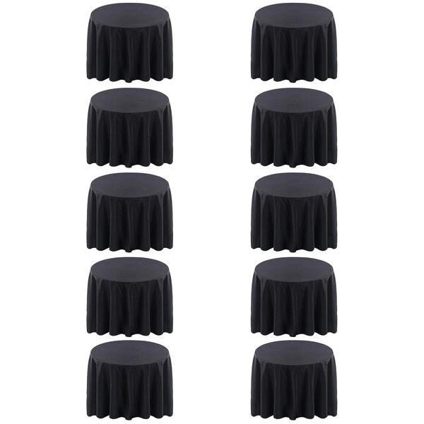Surmente 10 Pack 120in Round Tablecloth, Decorative Black Table Cloths for Parties and Weddings,Stain Resistant Washable Polyester Round Table Cover for Dining Table Banquets