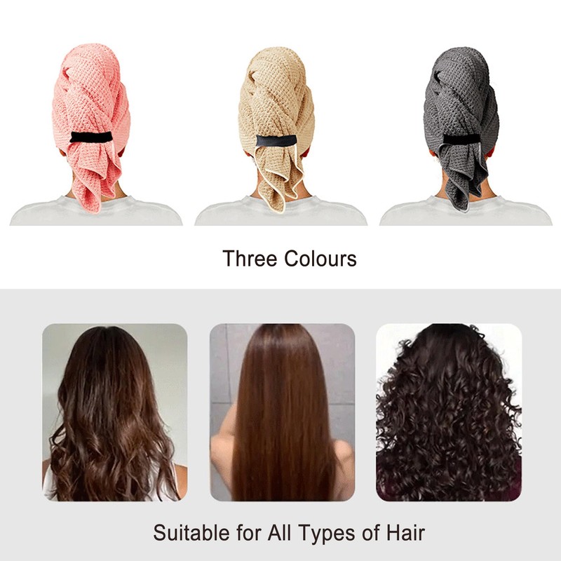 - Fácil de usar: correa elástica fuerte para que lo pongas fácilmente. Simplemente envuelve, mantén las toallas de cabello para cabello largo seguras en tu cabeza. No se cae. La toalla de pelo envuelve las manos verdaderamente libres y puedes hacer tus cosas diarias sin interrupciones, baño, maquillaje, viajes familiares, gimnasio, yoga, camping, spa, preparándote para cosas de los niños, etc.