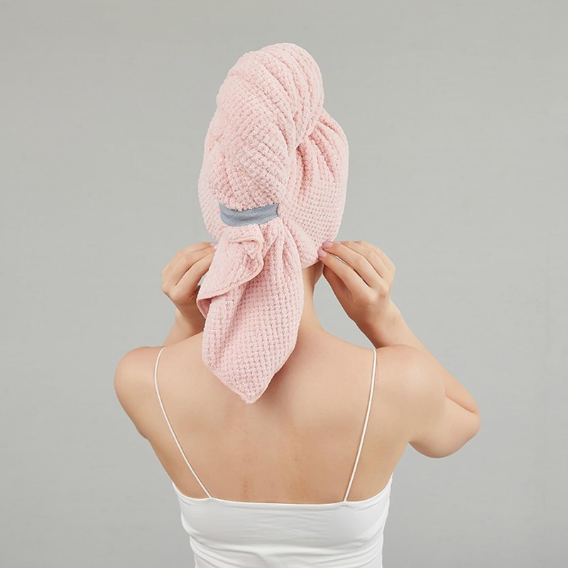 SurPRISE PIE - Toalla de microfibra con correa elástica, toalla de microfibra súper absorbente y suave para el cabello, toallas de cabello para cabello largo, grueso, corto, rizado, anti