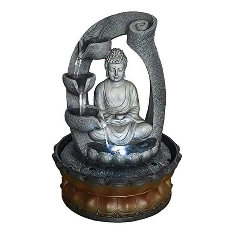 Buddha Tabletop Waterfall Fountain Meditation Relaxing Indoor Decoration, Zen Fountain for Home, Office, Bedroom Decoration(Grey 2)