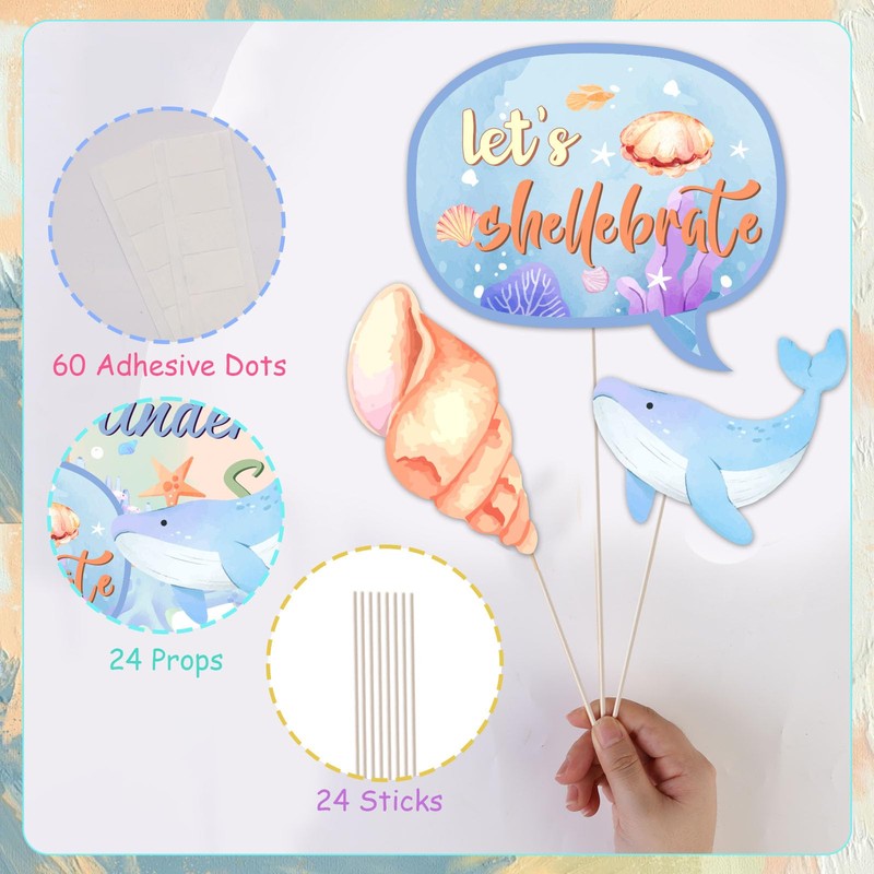 - The package includes: 24 pieces sea animal photo props card, 24 pieces paper sticks and 60 pieces glue dots. They will make your pictures more attractive.