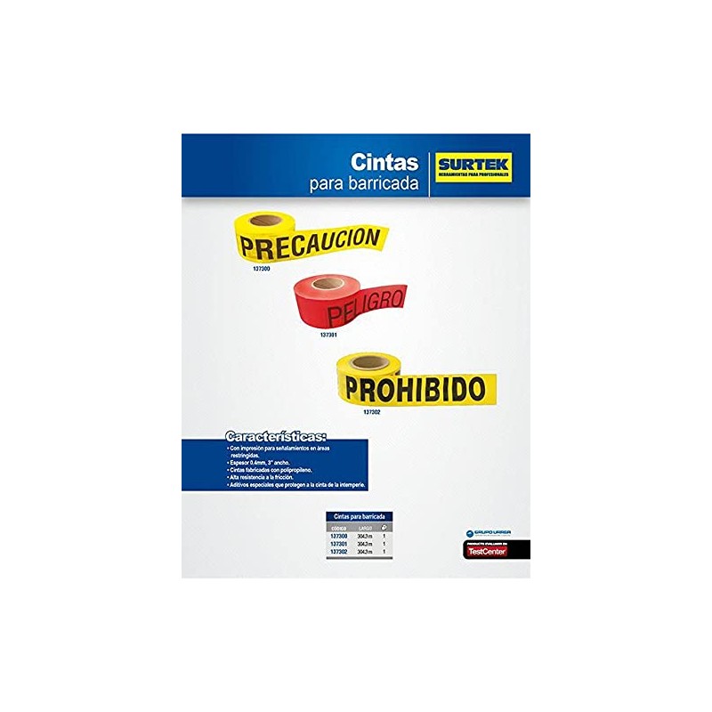 Surtek 137302 Cinta para barricada "PROHIBIDO EL PASO" ancho 3" de 304 m