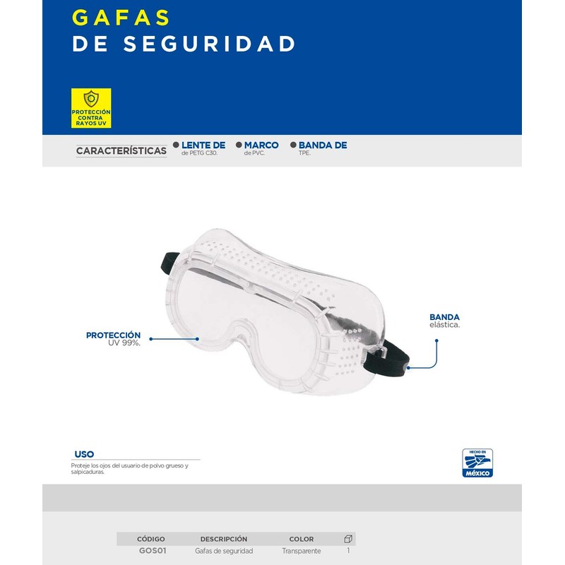 Surtek GOS01 Goggles de Seguridad, Transparente