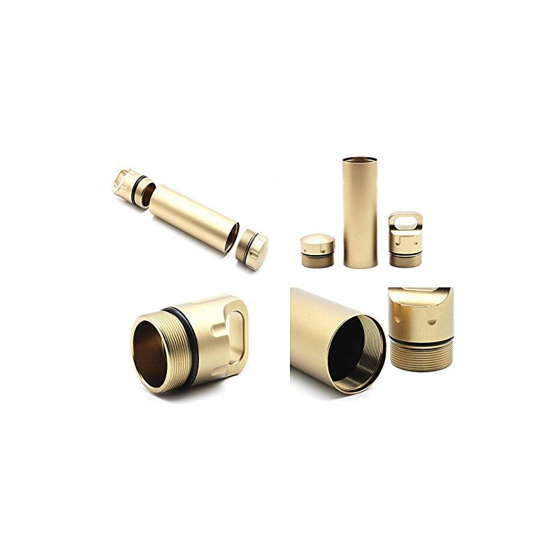 Survival Capsule Waterproof Seal Bottle Aluminum EDC Container Tank Survival Emergency Tool for Hunting Camping Mountaineering (Tan, 1PCS)