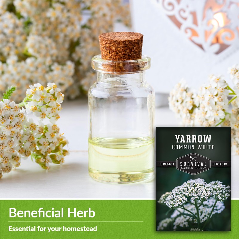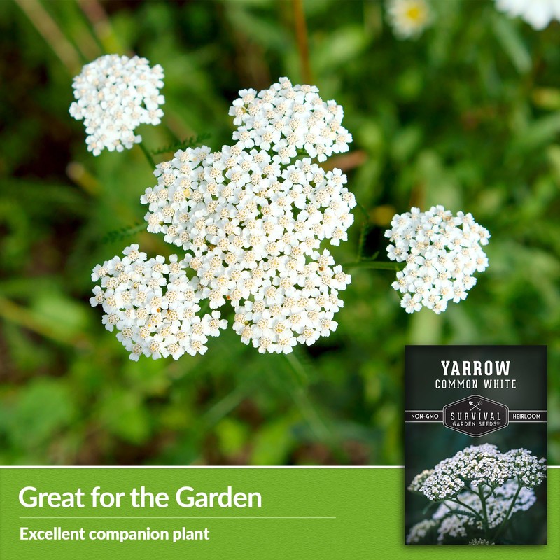 Survival Garden Seeds White Yarrow Seeds for Planting - 5 Packets with Instructions to Plant & Grow Beneficial Flowering Herbs in Your Home Vegetable Garden - Non-GMO Heirloom Variety