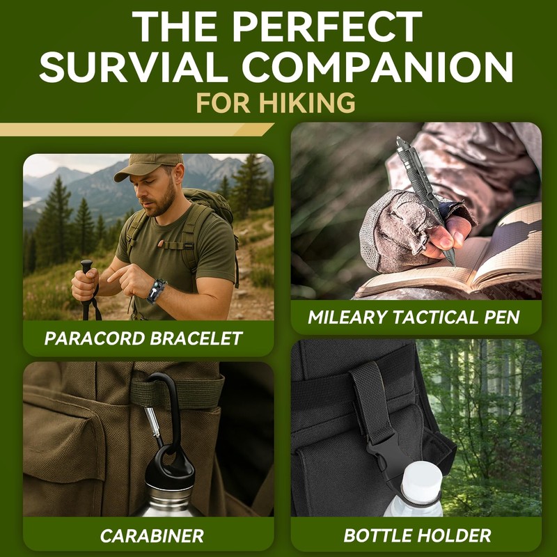 - HIGH-QUALITY CAMPING ESSENTIALS – Each survival tool is made of strong, durable materials built to withstand outdoor conditions. Reliable and reusable gear designed for real adventures – whether it’s camping, hiking, hunting, fishing, or everyday preparedness.