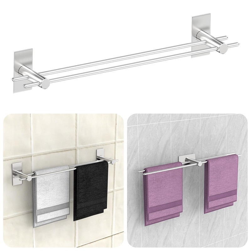 SUS 304 Hand Towel Holder No Drilling Required, Kitchen Towel Rail, Double Towel Rail, Adjustable Base, 80 cm Towel Holder Shower Wall