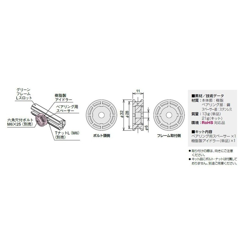 - Resin idler for 2 wires with a diameter of 1.2 inches (32 mm)