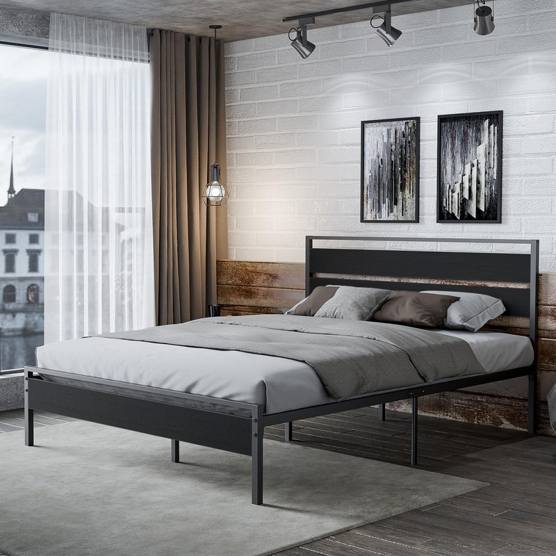 - 【Easy & Fast Assembly】The queen bed frame with headboard is designed for easy and fast assembly with Snap in design and foldable frames. Clear instructions and video tutorials are provided to simplify the installation process. All parts of this metal and wood mixed queen bedframe are clearly labeled. Additionally, we include all necessary hardware, tools, and assembly instructions in the box. The ideal and suitable mattress height for this bed frame is 8" to 12"