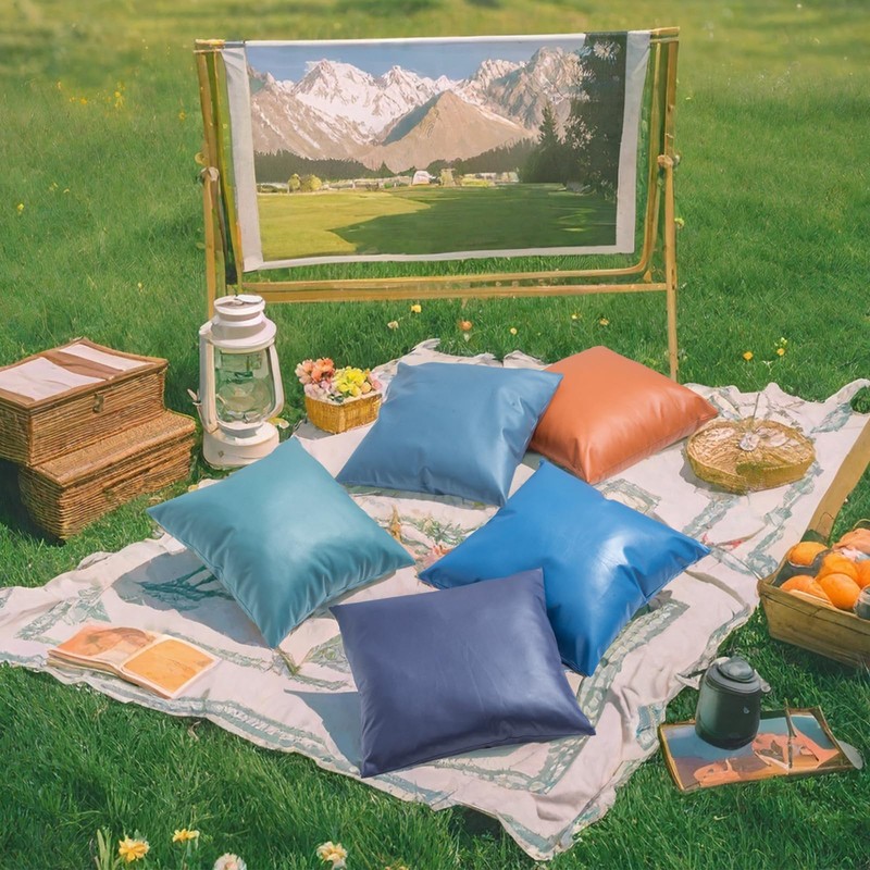 SUSIE'S GARDEN Faux Leather Outdoor 100% Waterproof Throw Pillow Covers 18x18 Set of 4 Decorative SkyBlue Patio Furniture Cushion Covers Outside Decor for Couch Garden Bench Tent Balcony Sofa