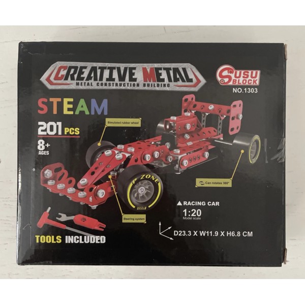 Susu Block Steam Creative Metal Construction Building 201 PCs. Tools Included Racing Car