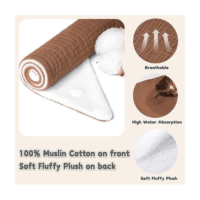 - Soft & Superior Absorbency: Our Susurration Muslin Baby Drool Bibs are crafted from 100% cotton muslin on the front, they are backed with water-resistant soft plush to ensure maximum absorption with a skin-friendly, gentle touch for your baby's skin. The dual-layered design ensures both you and your baby remain free from wet clothes all day long.