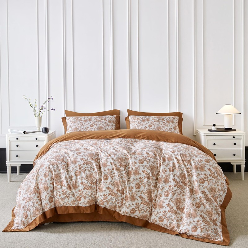 Caramel blossom floral pattern duvet cover set can easily change the decor style of your bedroom.