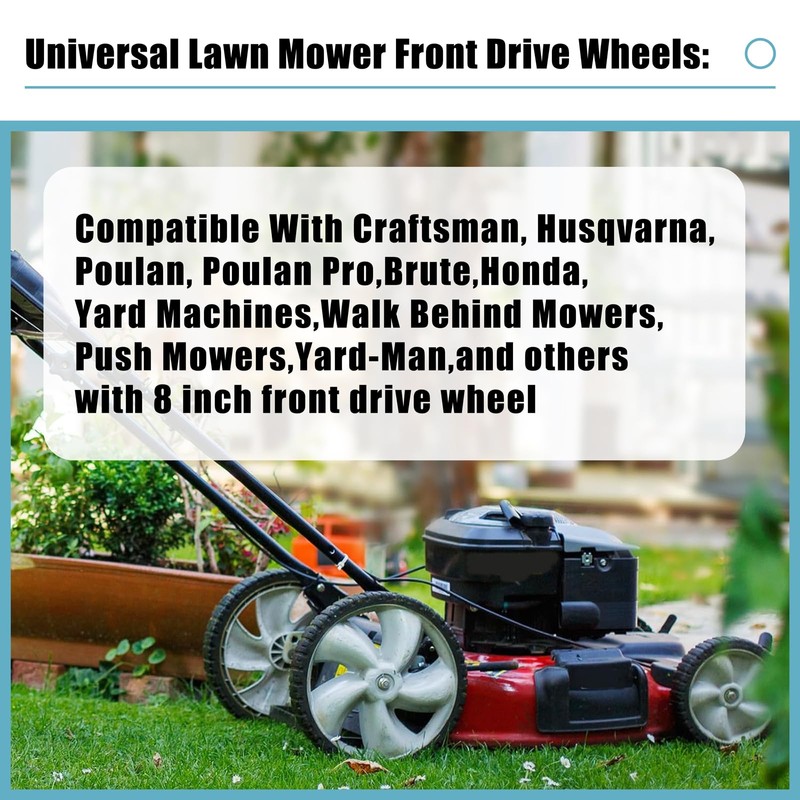 8" lawn mower wheels compatible with MTD, Yard Man, Craftsman, Huskee, Yard Machines Self Propelled Walk-Behind lawnmower