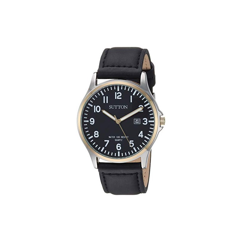 Sutton by Armitron Men's SU/5015BKTT Date Function Two-Tone and Black Leather Strap Watch