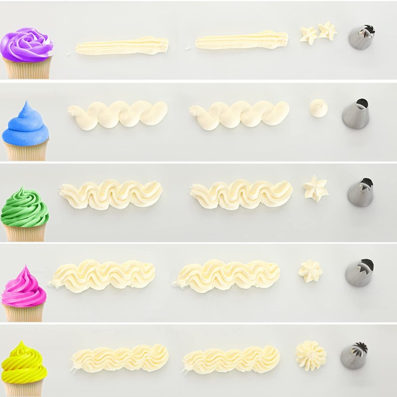 - Juego completo de 5 puntas: el juego de 5 puntas de tubería grande es adecuado para todo tipo de decoración de pasteles, helados, batidos y todo tipo de decoración de pastelería.