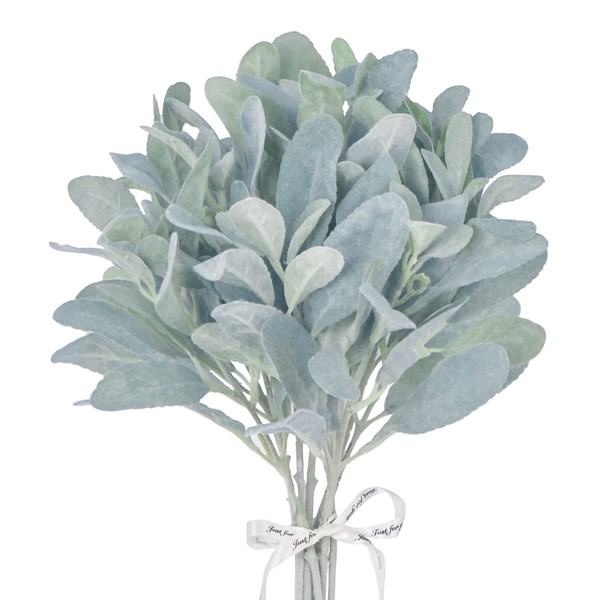 - [Usage]: Use These faux greenery stems simulate lambs ear gray green seeded eucalyptus leaves to add a touch of dusty green and texture to bouquets, lamb ear wreath, flowers, greenery decor, artificial wedding bouquet centerpieces, mantels, shelves, coffee tables arrangements,office ,farmhouse,Christmas,and other indoor outside leaf decoration. You can also let it stand alone in a vase as an effortless farmhouse floral greenery arrangement and charming nature-inspired arrangement.