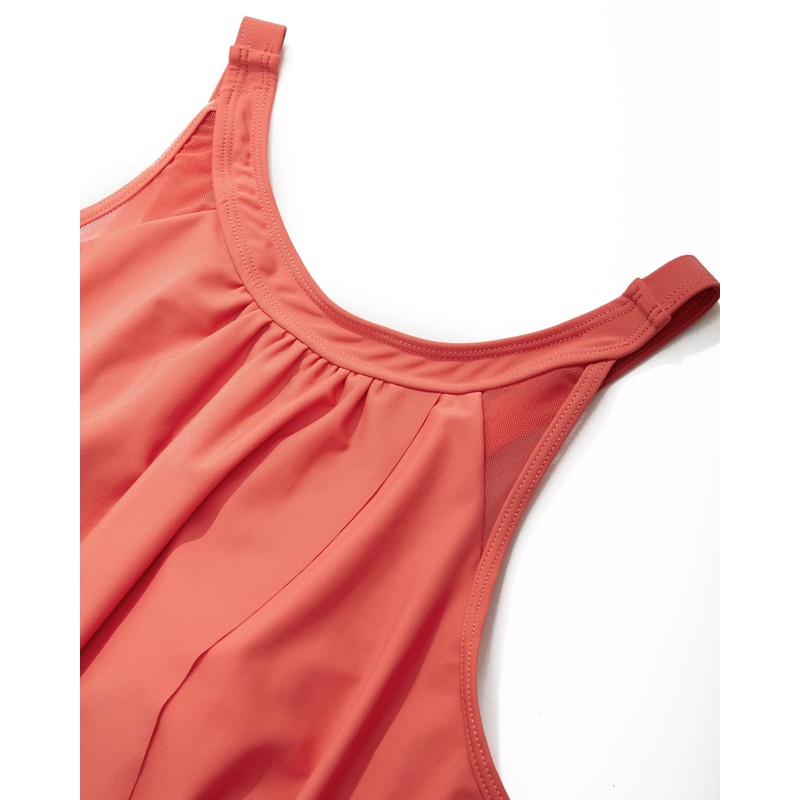 SUUKSESS Women Slimming Tummy Control Tankini Bathing Suits Ruffle High Waisted High Neck 2 Piece Swimsuits(Coral Pink Leaf,M)