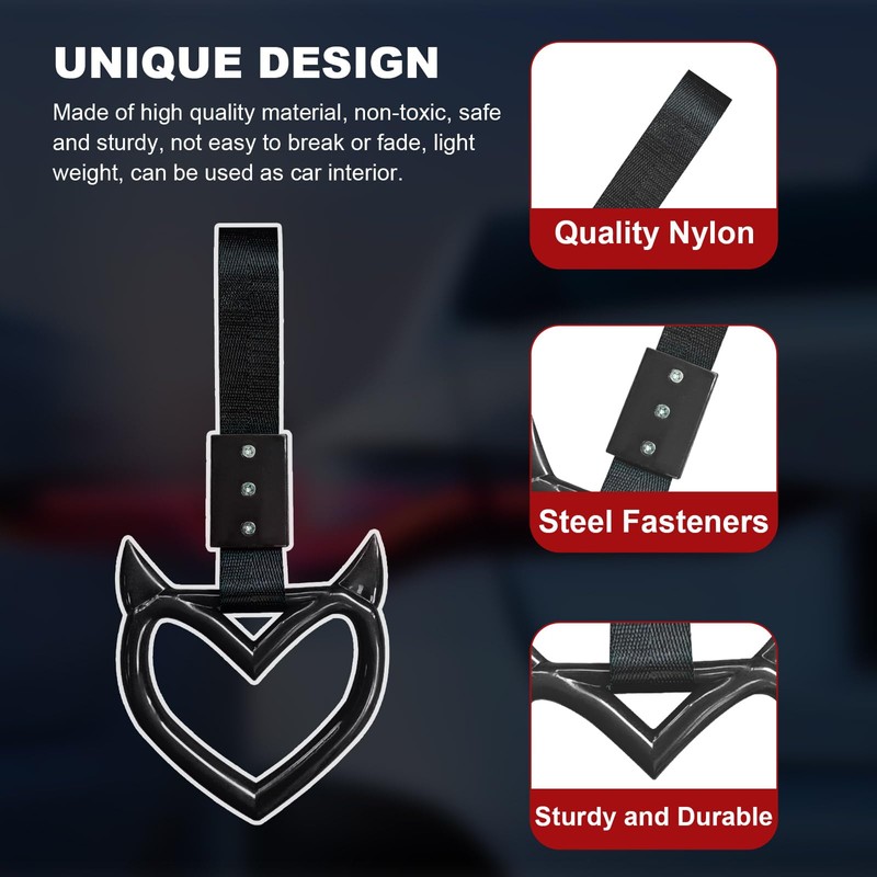 Suvnie 2 PCS Heart Shaped Handle Rings, Devil Heart Car Handle Hand Strap, Au...