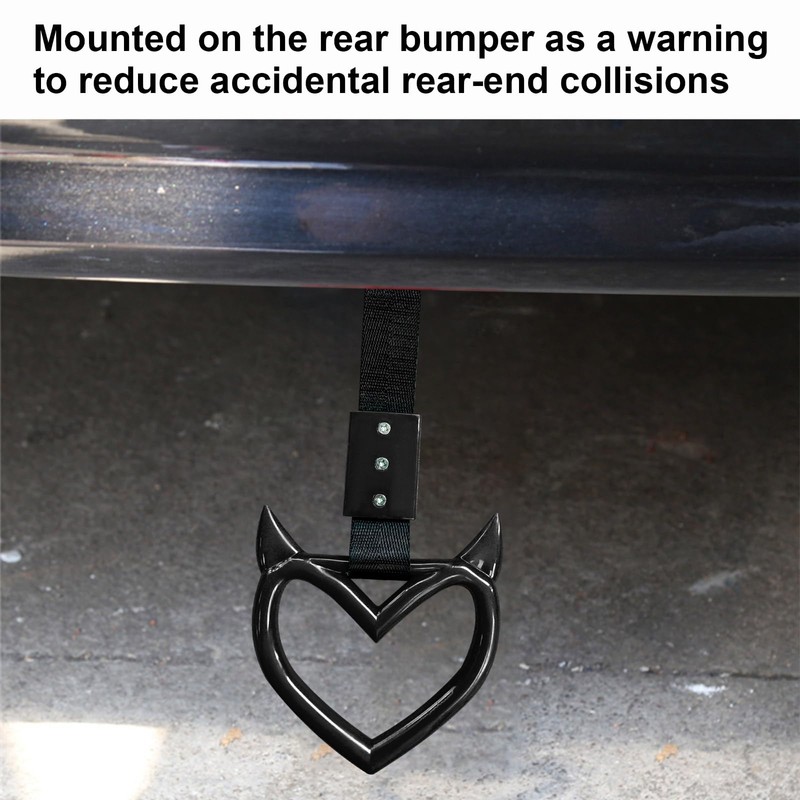 Suvnie 2 PCS Heart Shaped Handle Rings, Devil Heart Car Handle Hand Strap, Auto Rear Bumper Warning Drift Charm Rings (Black)