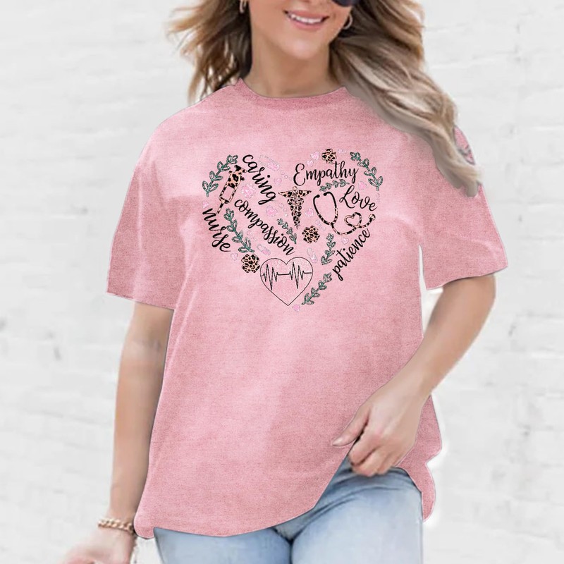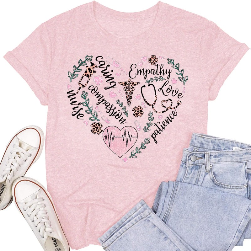 SUWATOIN Womens Nurse Shirts Nurse Stethoscope Love T-Shirt Funny Nursing Appreciation Week Shirt