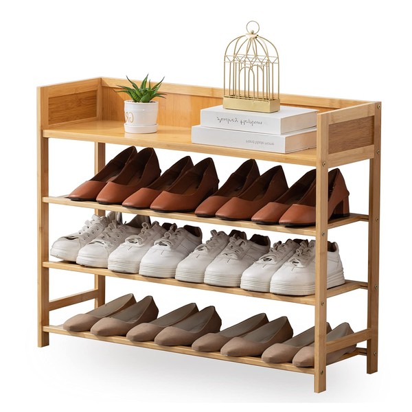 Suwoic Bamboo Shoe Rack Organizer, 4 Tier Shoe Shelf Storage Organizer, for Entryway, Hallway, and Closet (Nature-31.5)