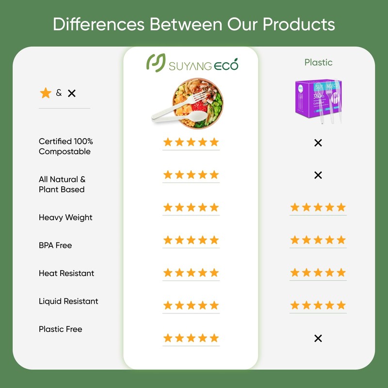 - 【SUSTAINABILITY】Add eco-consciousness to your event and show your commitment to a greener planet by using our compostable no plastic silverware.