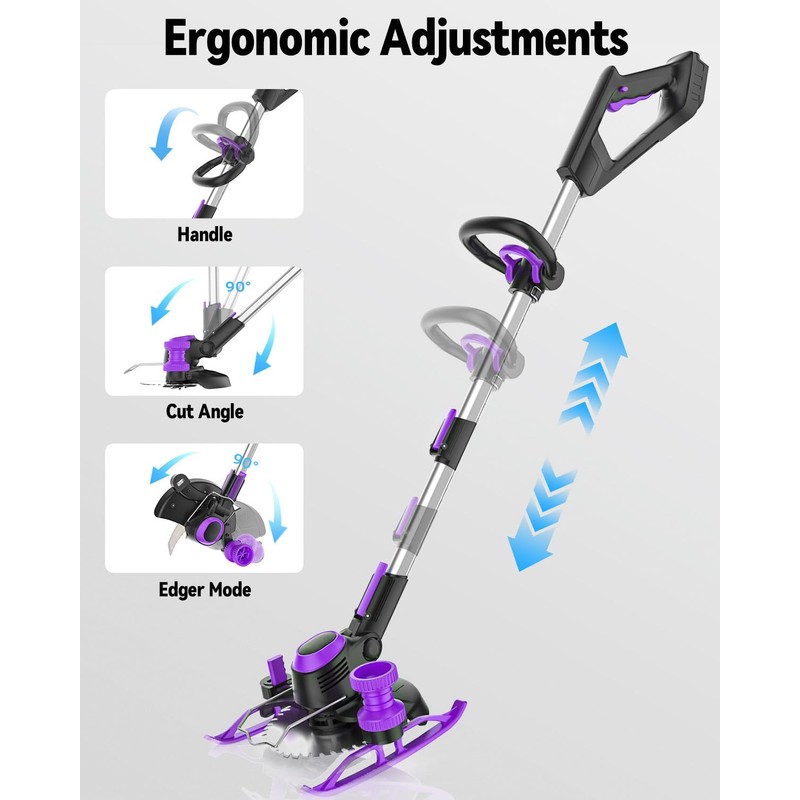 SuYau Weed Wacker Cordless, 5.2 lbs Lightweight, 3-in-1 Edger/Mower/Trimmer with Blade, 20V MAX* Battery Powered, 90 Min Runtime (with Two 2.5Ah Batteries)