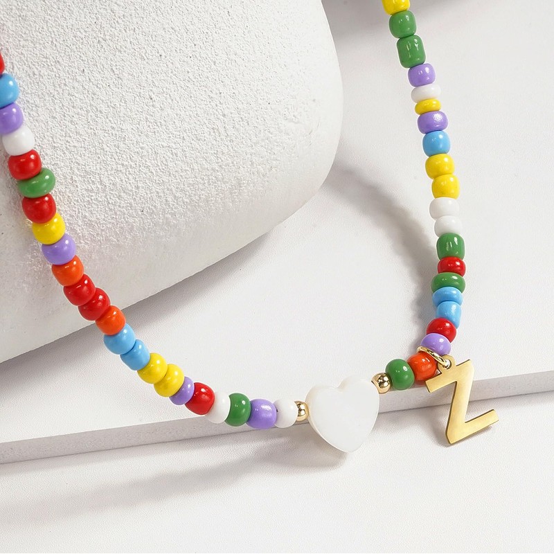 Suyi Initial Necklace Colorful Beaded Necklaces Heart Letters Choker Necklace for Women Z