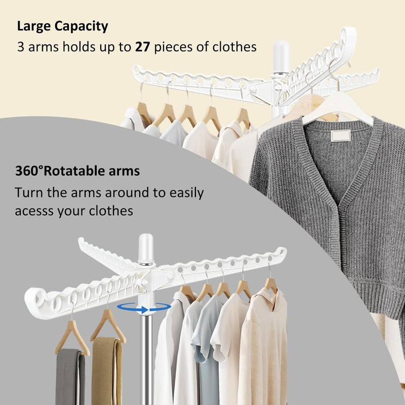 - [Full Rotation Access]The 360-degree rotation feature allows for easy access to all hanging items, facilitating a smooth drying process.