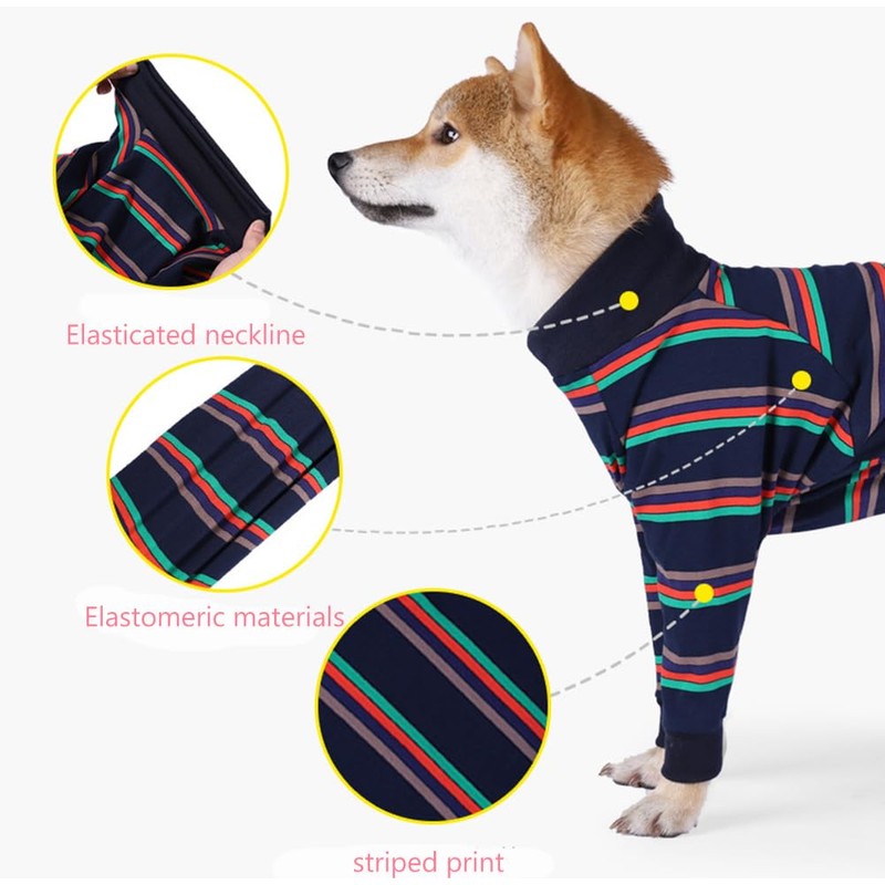 - COMFORTABLE DOG SUIT It has an elastic neck collar, which makes it easier for dogs to wear it through their head. The stretchy fabric and edges allow your dog to move freely and it is super easy to wash and dry. This super cute dog suit is perfect for your furry friend