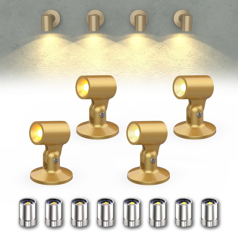 Suzeyar Miniature LED Lamp,Tiny Spot Lights with Magnet Base,Battery Operated LED Lights,Wireless Miniature Spot Light for Artwork Painting,Dollhouse Lighting,DIY Hand Craft and Diorama (Golden)