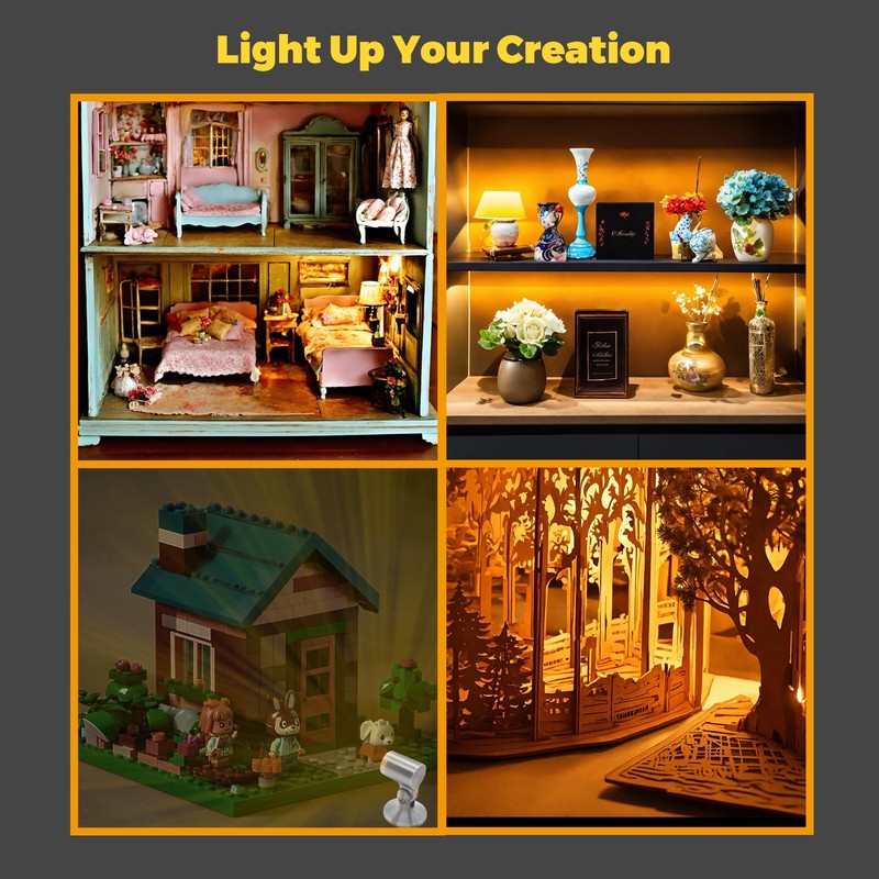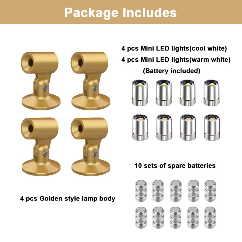 - 【Battery Operated Tiny Spotlight】SUZEYAR 4 pack Miniature Lamp + 4 pcs led light warmwhite(battery included) +4 pcs led light coolwhite(battery included) + 10 sets of spare battery(total 30 counts)