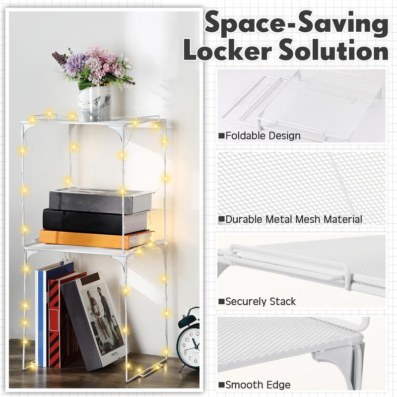- Appropriate Size: the locker organizer is designed to fit most standard size lockers; The whiteboard is about 8.27 x 11.81 inches/ 21 x 30 cm; The shelf is about 11.22 inches in length, 10.04 inches in width, and 12.8 inches in height; And the stackable metal shelf fold easily, making it easy to put in and out of the storage cabinet, offering ample storage without occupying too much space; This locker organizer set neatly arranges your belongings, increasing efficiency in retrieving items