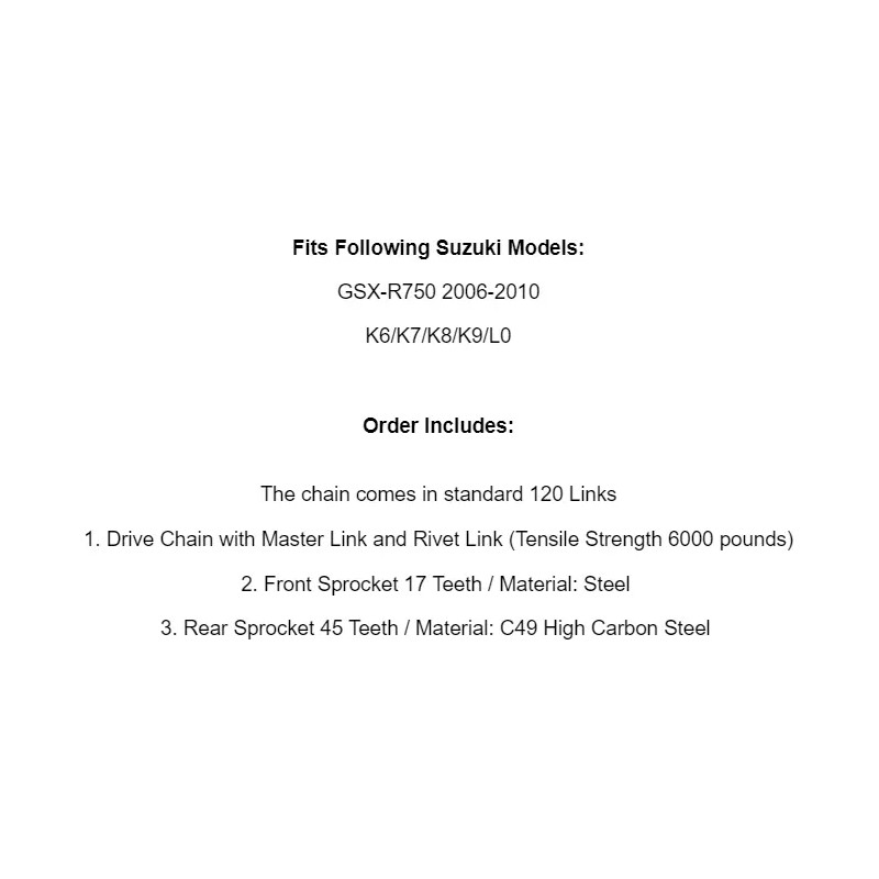Suzuki Drive Chain & Sprockets Kit for Suzuki GSX-R750 GSXR750 2006-2010