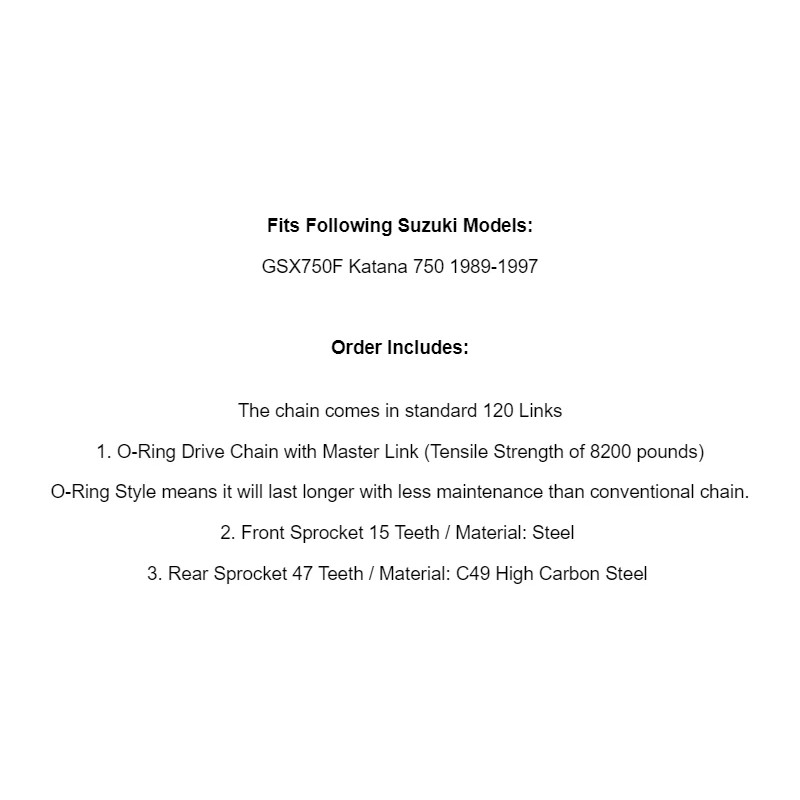 Suzuki Green O-Ring Drive Chain & Sprockets Kit for Suzuki GSX750F Katana 750 1989-97